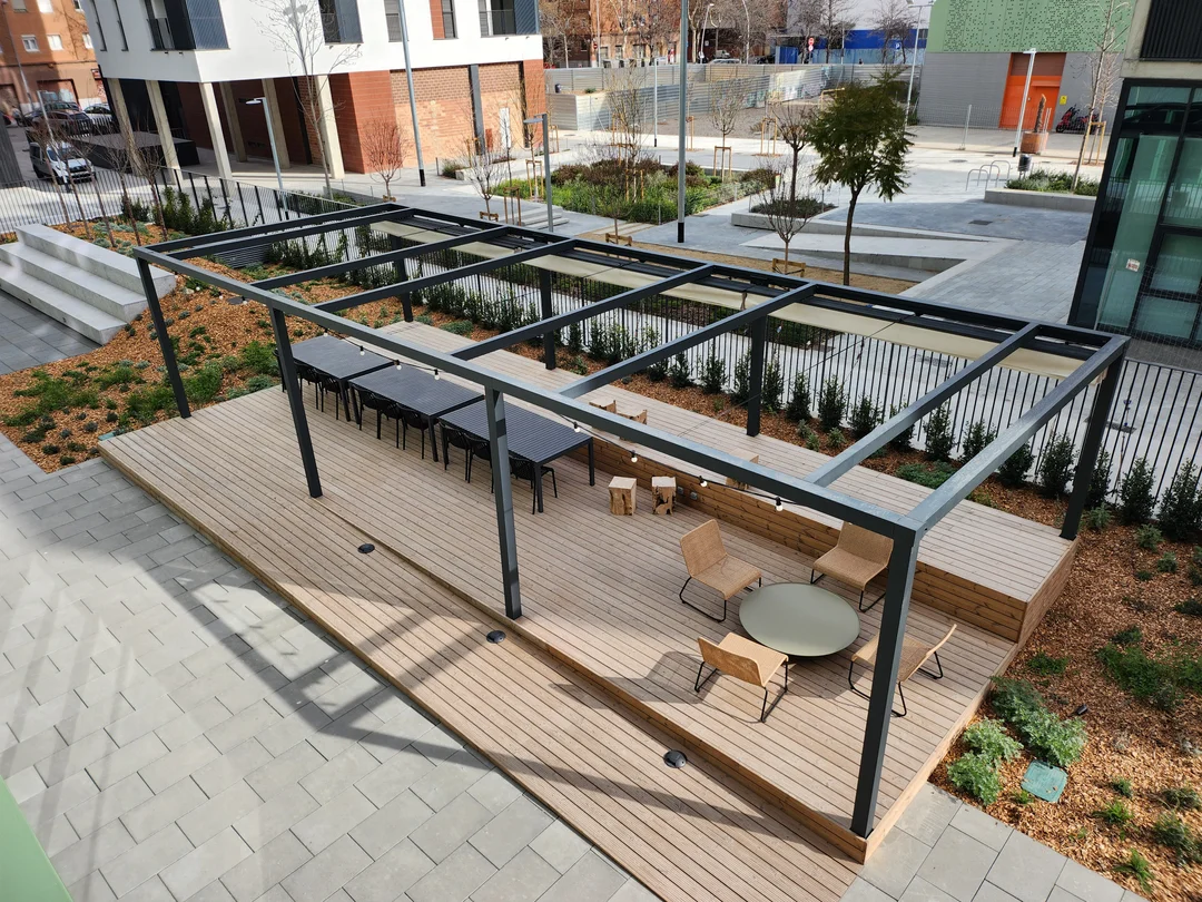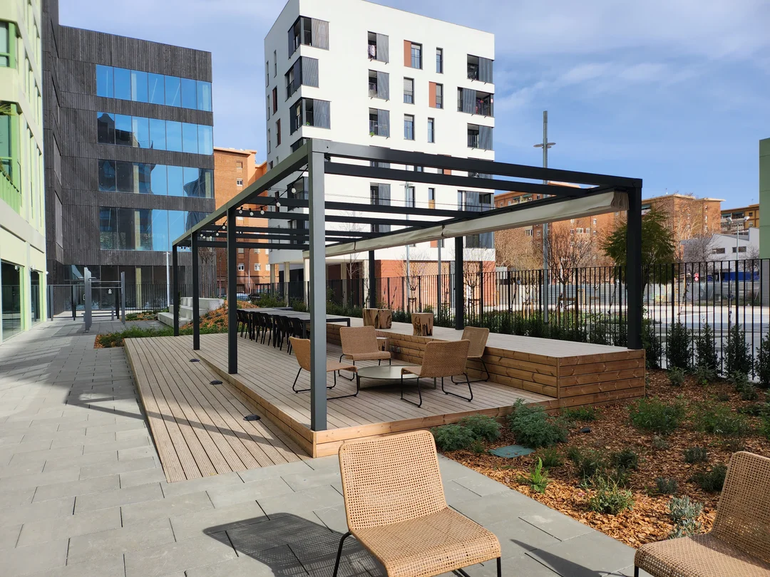 El projecte Pèrgola en Residència d’Estudiants neix amb l’objectiu d’oferir un espai exterior protegit, funcional i acollidor per al gaudi dels residents, integrant solucions tècniques adaptades a un ús intensiu i col·lectiu.