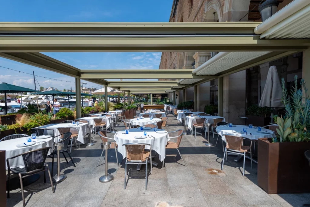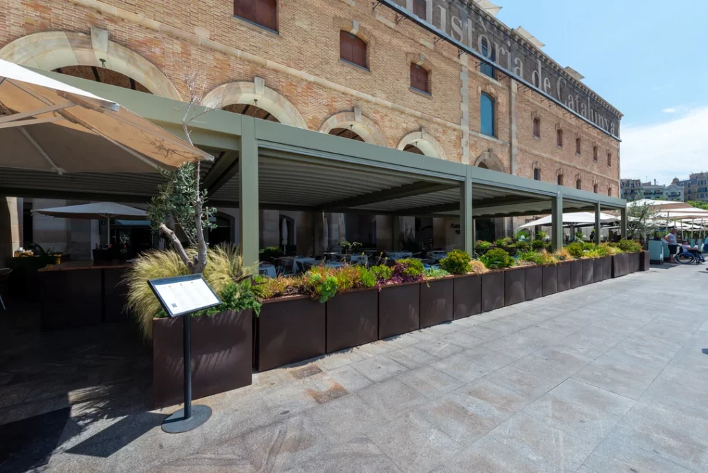Sin requerir un mantenimiento especialmente particular o exigente, la Pergotenda® Maestro es además la solución perfecta para el sector contract, ya que puede cubrir de forma eficaz y elegante superficies extensas en terrazas o patios.