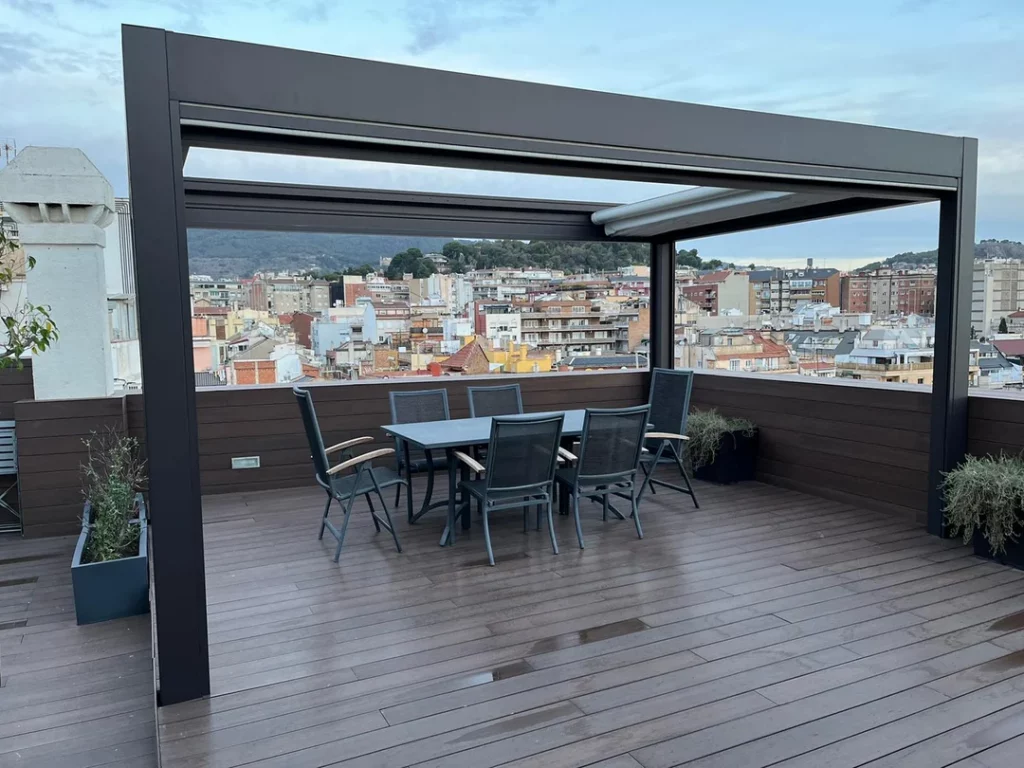 Innovación, tecnología y personalidad única son algunos de los elementos distintivos que convierten a la Pergotenda® Maestro en una solución ideal para casi cualquier espacio exterior. Puede personalizarse al ofrecer múltiples configuraciones de estructura, materiales y colores, ofreciendo siempre un resultado estético, sin tornillos a la vista, con canalones integrados y con motor oculto.