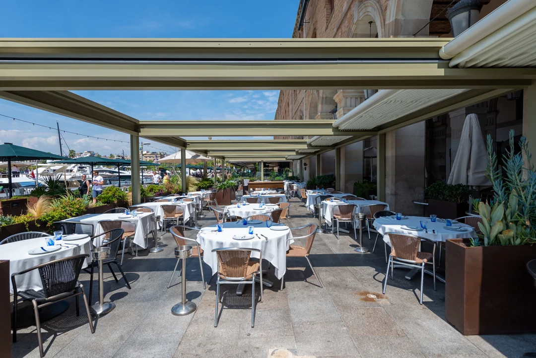 Sin requerir un mantenimiento especialmente particular o exigente, la Pergotenda® Maestro es además la solución perfecta para el sector contract, ya que puede cubrir de forma eficaz y elegante superficies extensas en terrazas o patios.