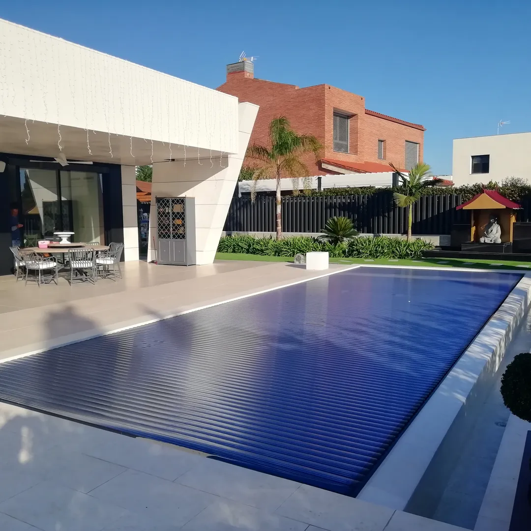 También suministramos e instalamos cubiertas automáticas, ideales para proteger el agua, mejorar la seguridad y reducir las necesidades de mantenimiento, así como sistemas de calefacción para piscinas que permiten prolongar la temporada de baño y garantizar un mayor confort térmico durante más meses al año. Estos sistemas incrementan la funcionalidad, la eficiencia y el valor de la instalación.
